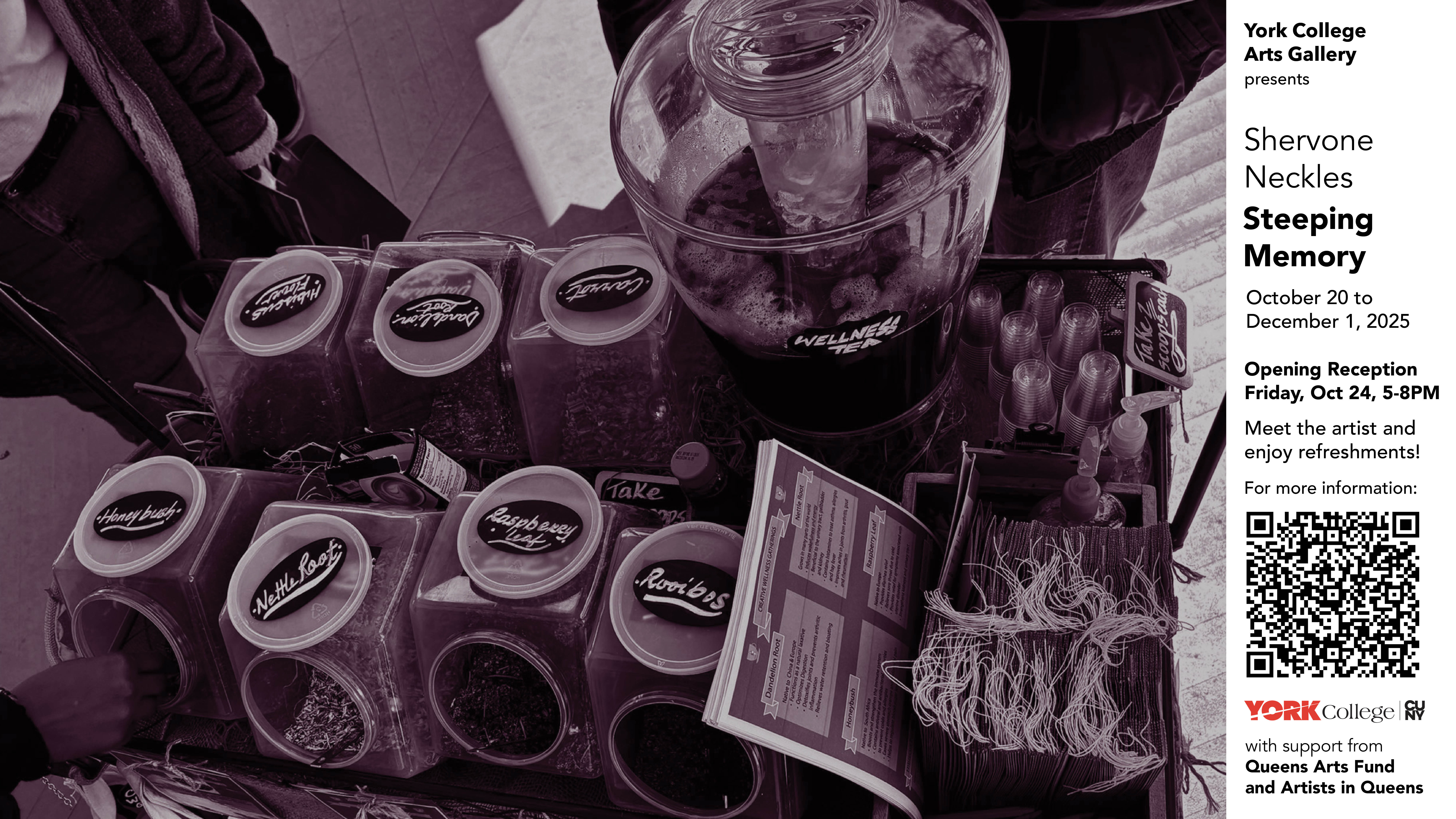 The York College Arts Gallery is proud to present Steeping Memory: A Collective Offering, a multi-sensory experience and special exhibition project by esteemed artist Shervone Neckles.