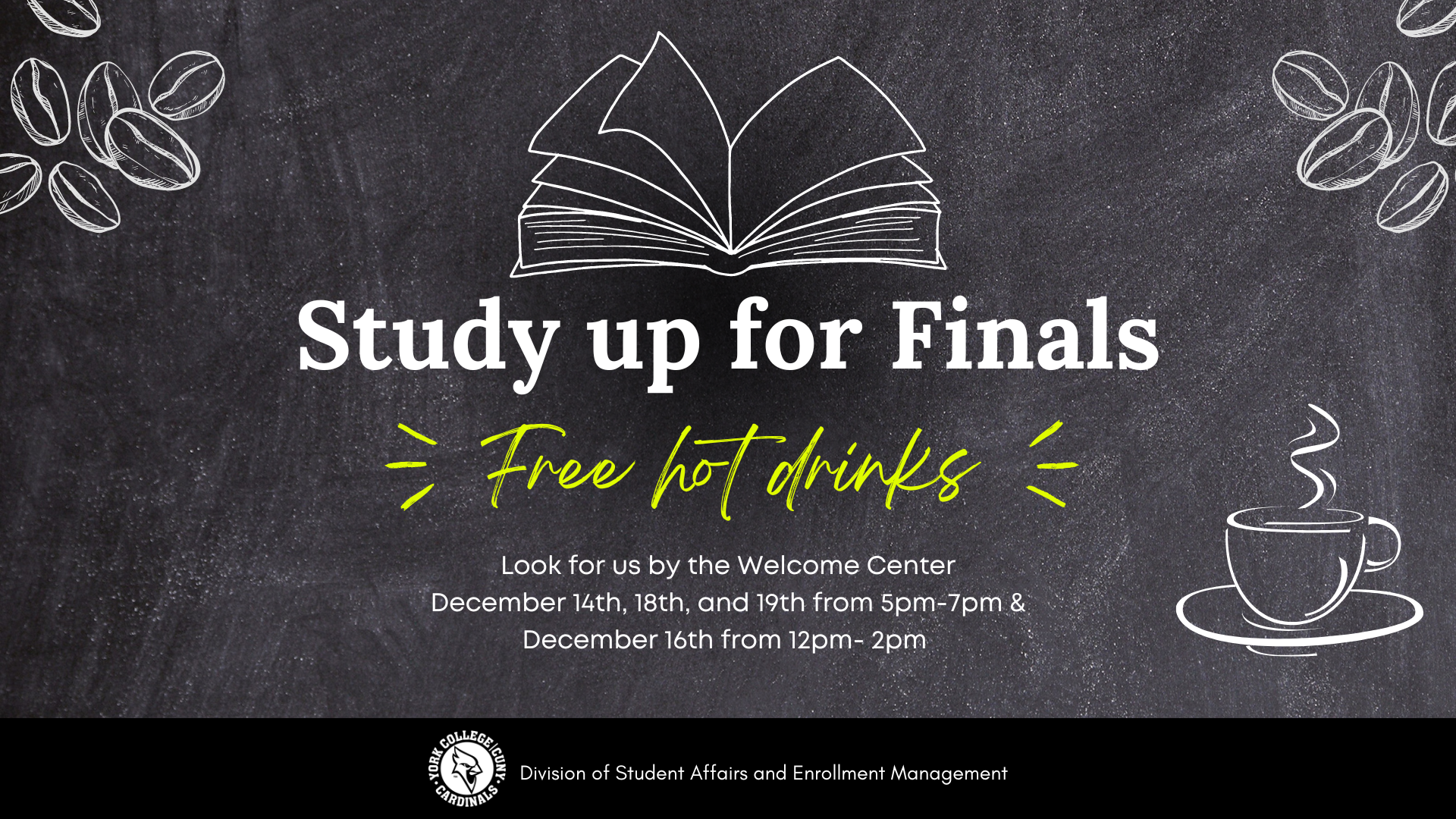 Cardinals! Stop by the Welcome Center and grab a hot beverage to drink while you study for final exams!
